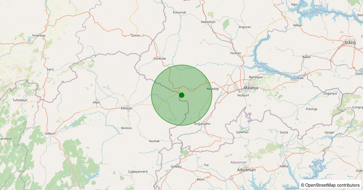 Son 7 gün içinde Akçadağ - Harunuşağı noktasından 100 km yarıçap içerisinde meydana gelen diğer depremler: