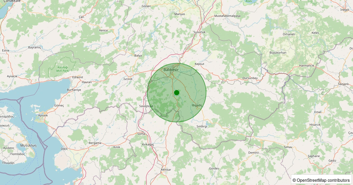 Son 7 gün içinde Altıeylül - Selimiye noktasından 100 km yarıçap içerisinde meydana gelen diğer depremler: