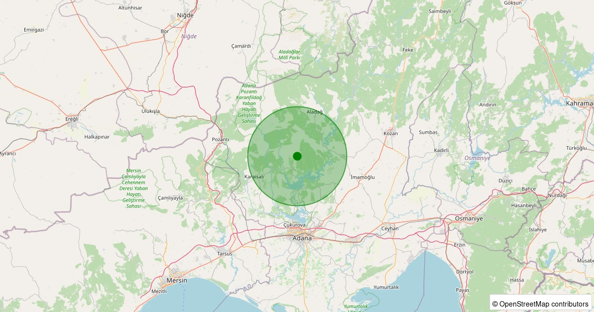 Son 7 gün içinde Karaisalı - Hacımusalı Köyü noktasından 100 km yarıçap içerisinde meydana gelen diğer depremler: