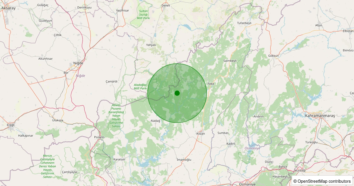Son 7 gün içinde Kozan - Ergenuşağı noktasından 100 km yarıçap içerisinde meydana gelen diğer depremler: