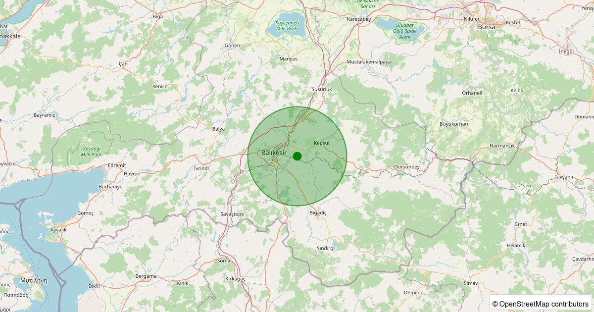 Son 7 gün içinde Altıeylül - Köylüköy noktasından 100 km yarıçap içerisinde meydana gelen diğer depremler: