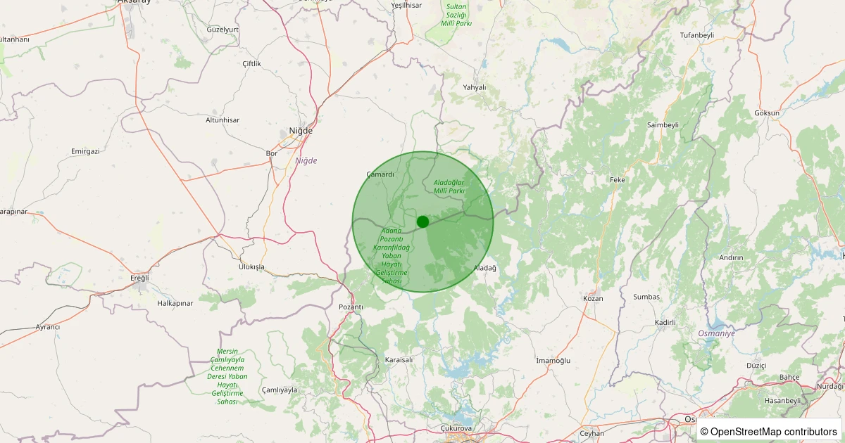 Son 7 gün içinde Aladağ - Kıcak noktasından 100 km yarıçap içerisinde meydana gelen diğer depremler: