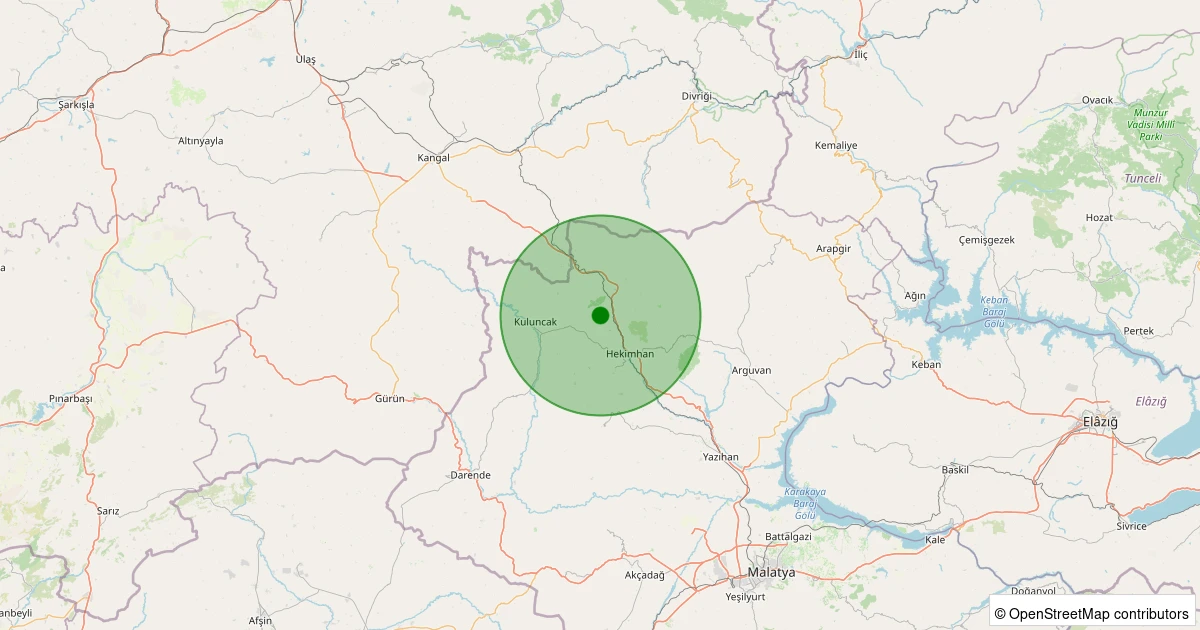 Son 7 gün içinde Hekimhan - Dereköy Köyü noktasından 100 km yarıçap içerisinde meydana gelen diğer depremler: