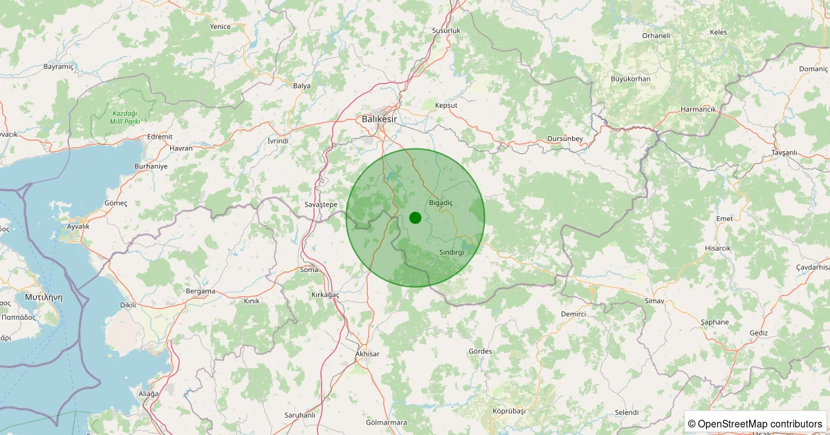 Son 7 gün içinde Sındırgı - Eşmedere noktasından 100 km yarıçap içerisinde meydana gelen diğer depremler: