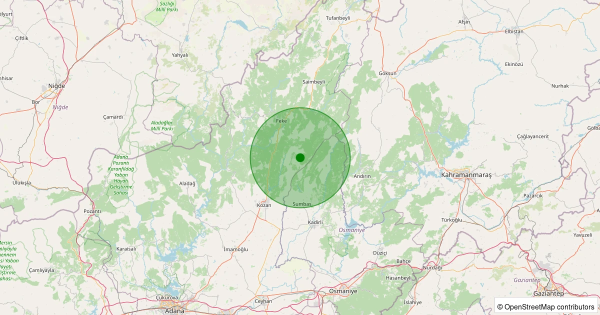 Son 7 gün içinde Kozan - Boztahta noktasından 100 km yarıçap içerisinde meydana gelen diğer depremler: