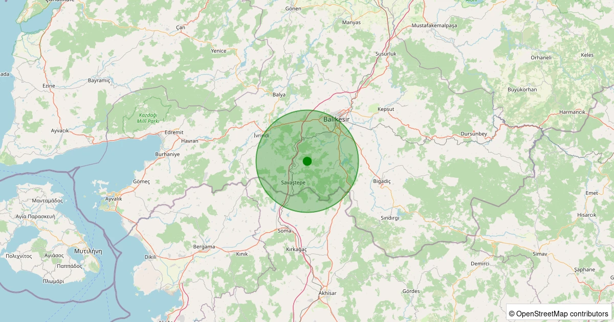 Son 7 gün içinde Savaştepe - Pelitcik noktasından 100 km yarıçap içerisinde meydana gelen diğer depremler: