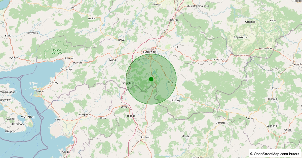 Son 7 gün içinde Altıeylül - Taşköy noktasından 100 km yarıçap içerisinde meydana gelen diğer depremler: