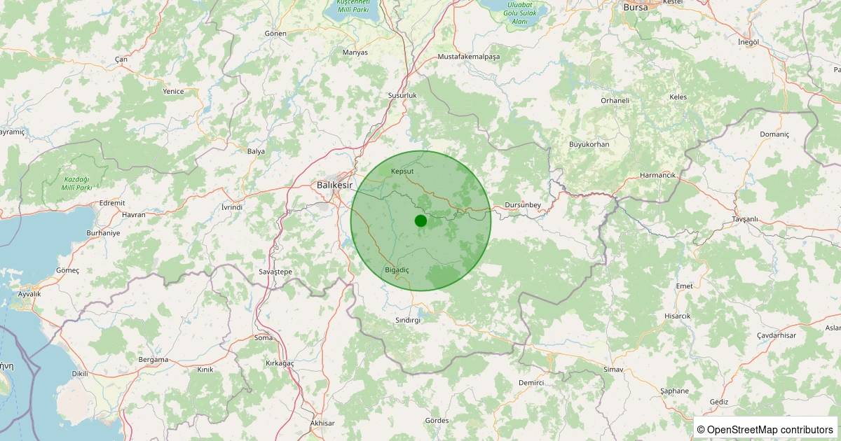 Son 7 gün içinde Kepsut - Akçakertil noktasından 100 km yarıçap içerisinde meydana gelen diğer depremler: