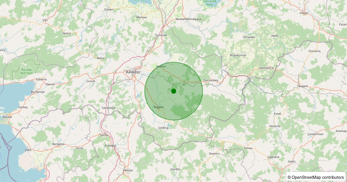 Son 7 gün içinde Kepsut - Mezitler noktasından 100 km yarıçap içerisinde meydana gelen diğer depremler: