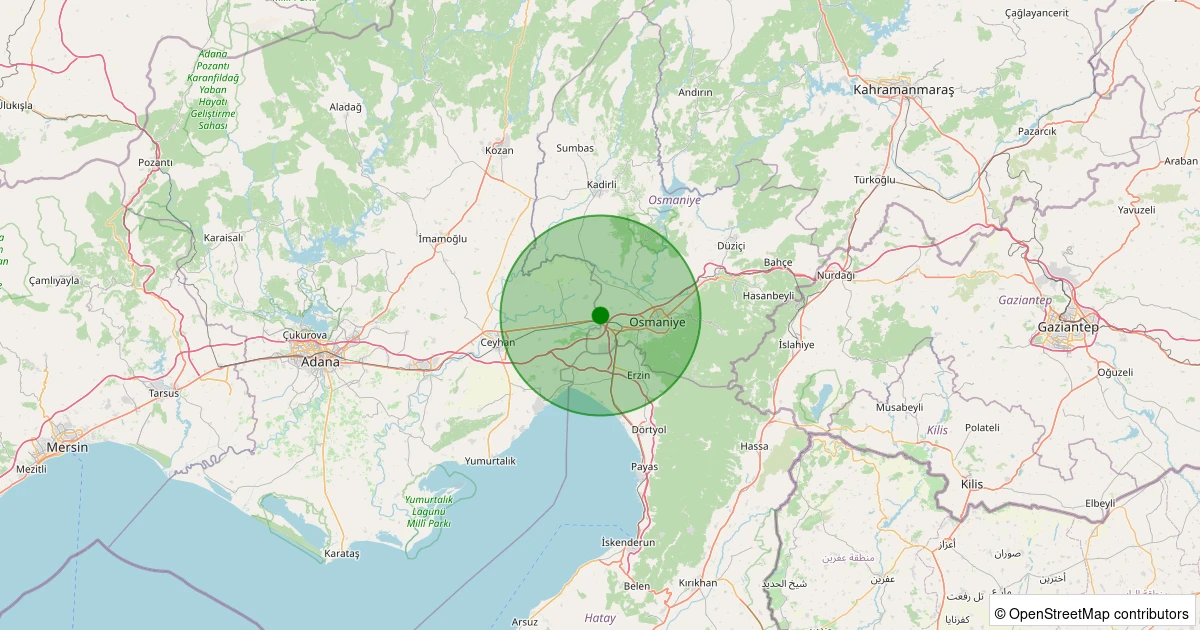 Son 7 gün içinde Ceyhan - Azizli noktasından 100 km yarıçap içerisinde meydana gelen diğer depremler: