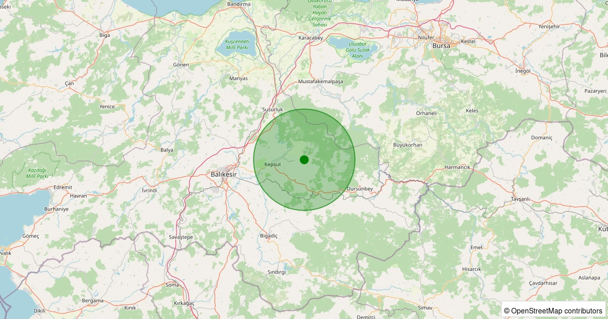 EMSC üzerinden alınan ölçümlere göre Kepsut - İsaalan bölgesinde 29.11.2025 00:15 tarihinde gece saatlerinde 1.2 büyüklüğünde bir deprem meydana geldi.