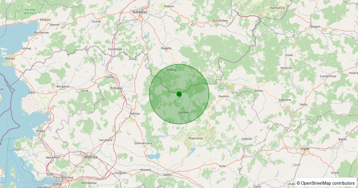 Son 7 gün içinde Sındırgı - Yüreğil/Yeni noktasından 100 km yarıçap içerisinde meydana gelen diğer depremler: