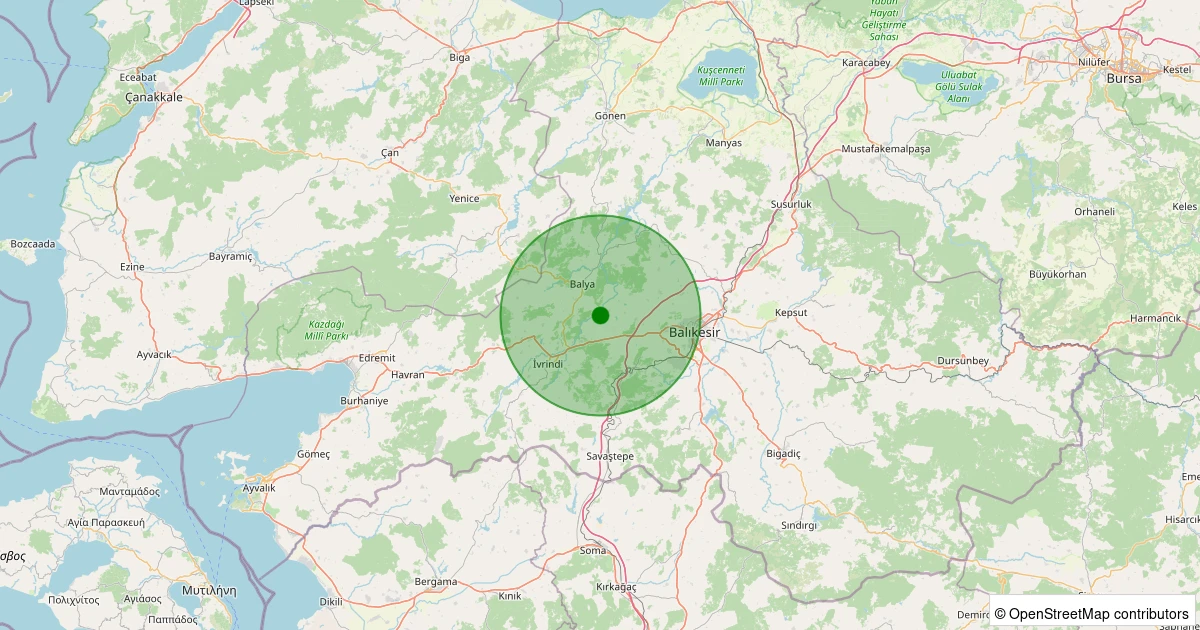 Son 7 gün içinde Karesi - Kocaavşar noktasından 100 km yarıçap içerisinde meydana gelen diğer depremler: