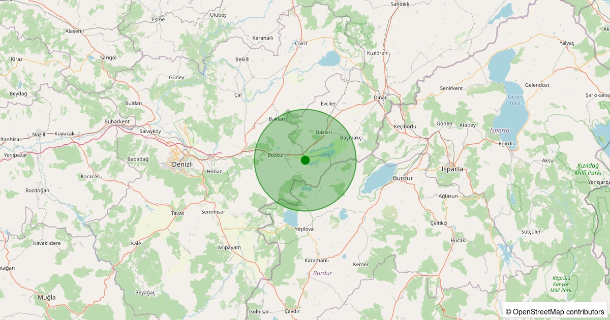 Son 7 gün içinde Çardak - Hürriyet noktasından 100 km yarıçap içerisinde meydana gelen diğer depremler: