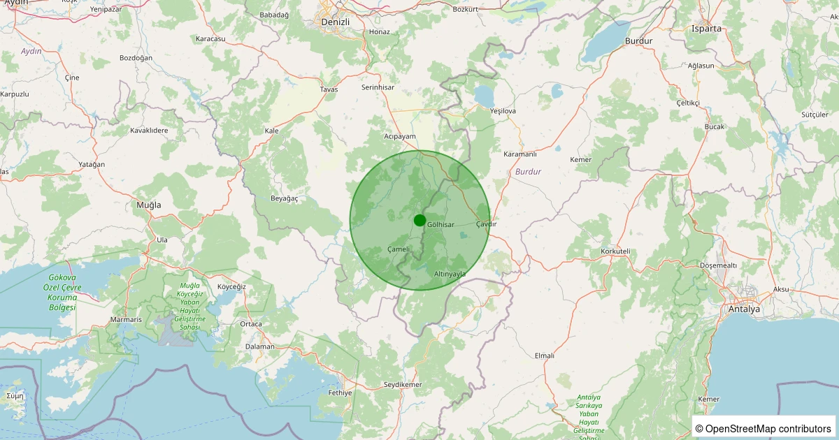 Son 7 gün içinde Çameli - Kınıkyeri noktasından 100 km yarıçap içerisinde meydana gelen diğer depremler: