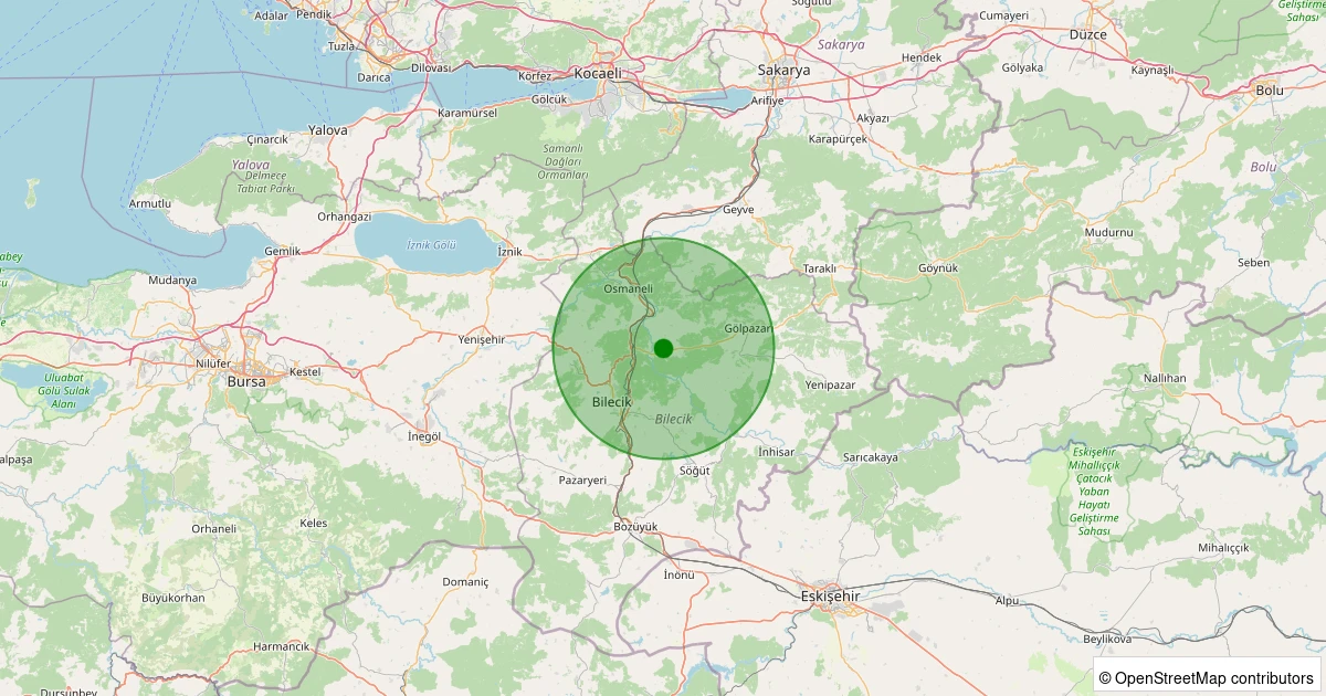 Son 7 gün içinde Gölpazarı - Hüyük Köyü noktasından 100 km yarıçap içerisinde meydana gelen diğer depremler: