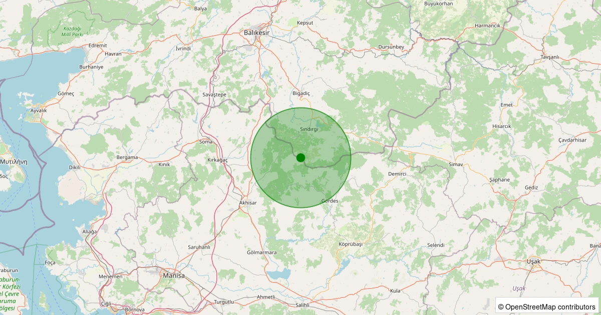 Son 7 gün içinde Sındırgı noktasından 100 km yarıçap içerisinde meydana gelen diğer depremler: