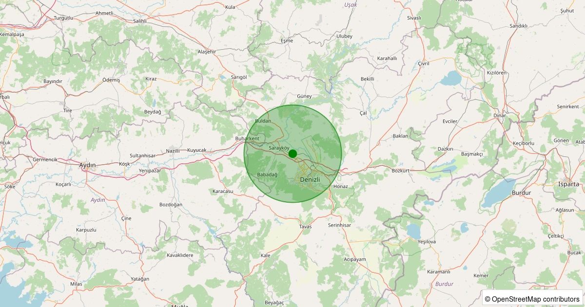 Son 7 gün içinde Sarayköy - Beylerbeyi Köyü noktasından 100 km yarıçap içerisinde meydana gelen diğer depremler: