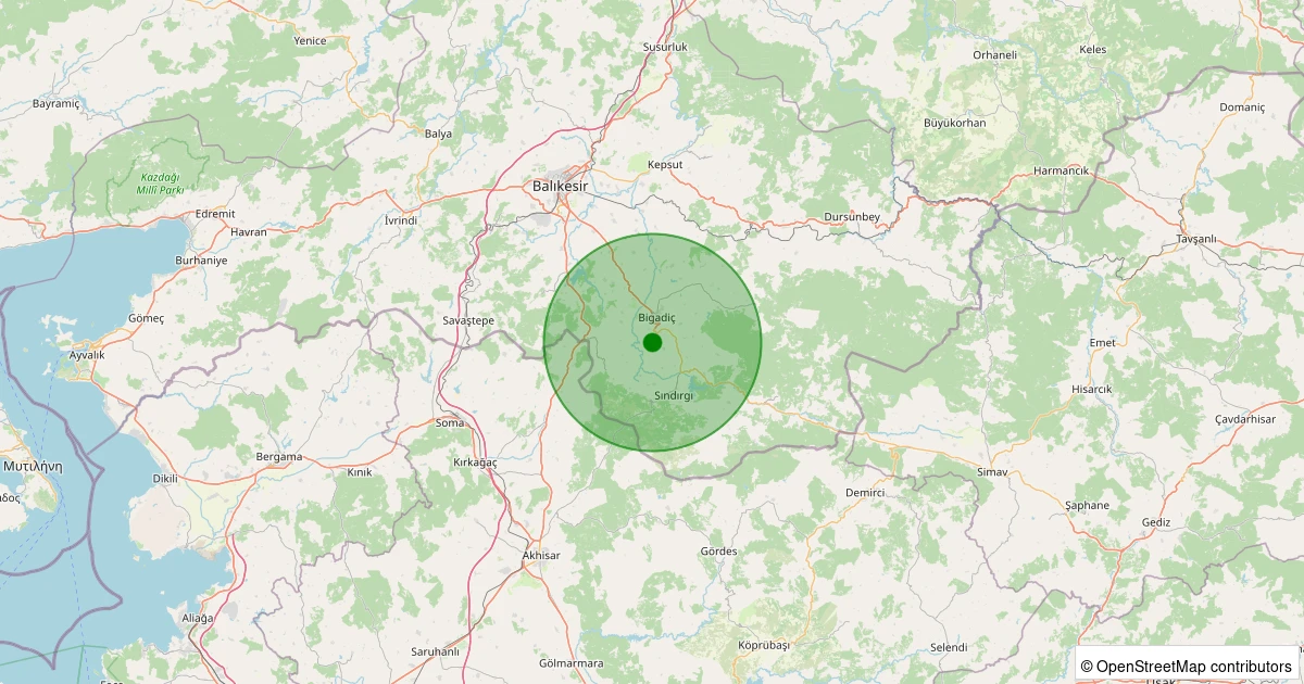 Son 7 gün içinde Bigadiç - Kayalıdere noktasından 100 km yarıçap içerisinde meydana gelen diğer depremler: