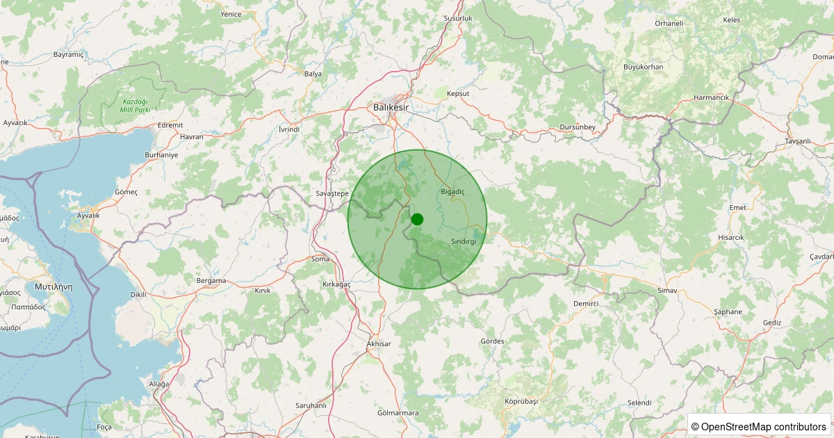 Son 7 gün içinde Sındırgı - Gölcük noktasından 100 km yarıçap içerisinde meydana gelen diğer depremler: