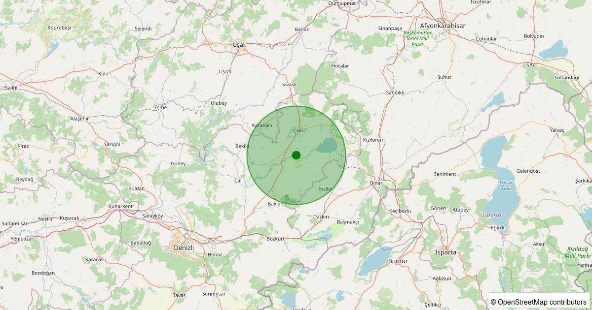 Son 7 gün içinde Çivril - Karayahşiler Köyü noktasından 100 km yarıçap içerisinde meydana gelen diğer depremler: