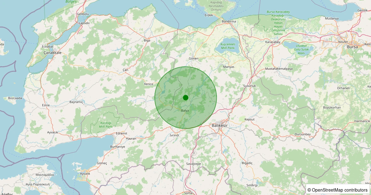 Son 7 gün içinde Balya - Kayapınar Köyü noktasından 100 km yarıçap içerisinde meydana gelen diğer depremler: