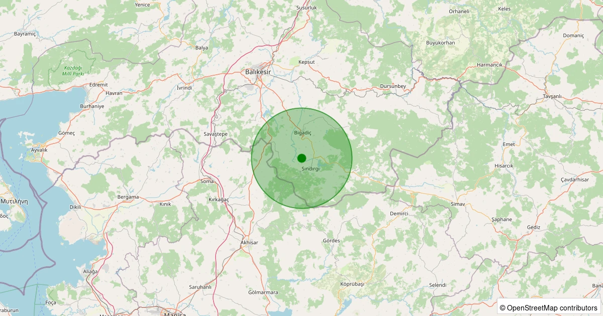 Son 7 gün içinde Sındırgı noktasından 100 km yarıçap içerisinde meydana gelen diğer depremler: