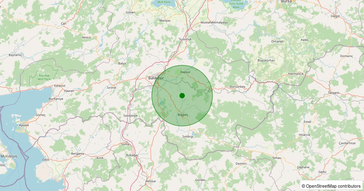 Son bir hafta içerisinde Balıkesir şehri Bigadiç - Kadıköy noktasından 100 km yarıçap içerisinde toplamda 1755 deprem kaydedilmiştir. Bu depremlerden en büyüğü 4.9 büyüklüğünde ve en sığ odaklısı 0.00 kilometre derinlikte gerçekleşmiştir.