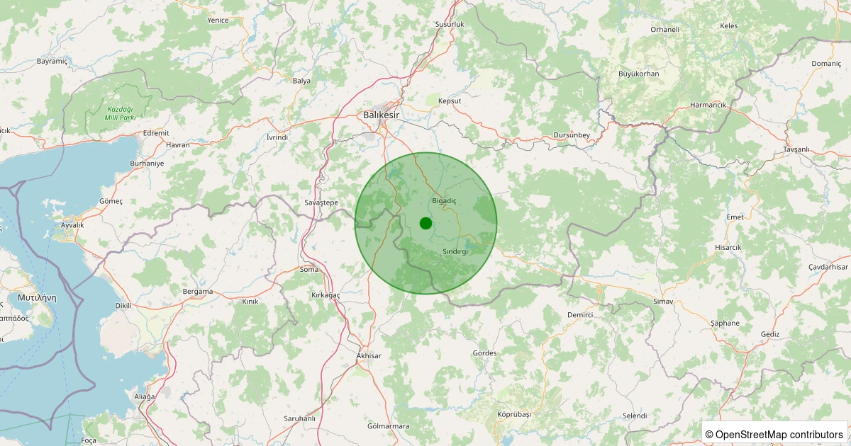 Son 7 gün içinde Sındırgı - Eşmedere noktasından 100 km yarıçap içerisinde meydana gelen diğer depremler: