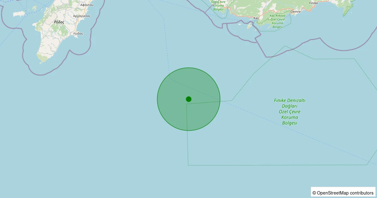 Son bir hafta içerisinde Akdeniz - [76.14 km] Kaş (Antalya) noktasından 100 km yarıçap içerisinde toplamda 6 deprem kaydedilmiştir. Bu depremlerden en büyüğü 2.4 büyüklüğünde ve en sığ odaklısı 3.50 kilometre derinlikte gerçekleşmiştir.