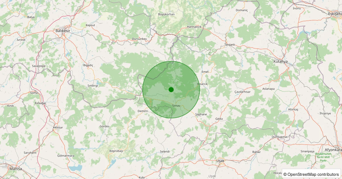Son 7 gün içinde Simav - Hamzabey noktasından 100 km yarıçap içerisinde meydana gelen diğer depremler: