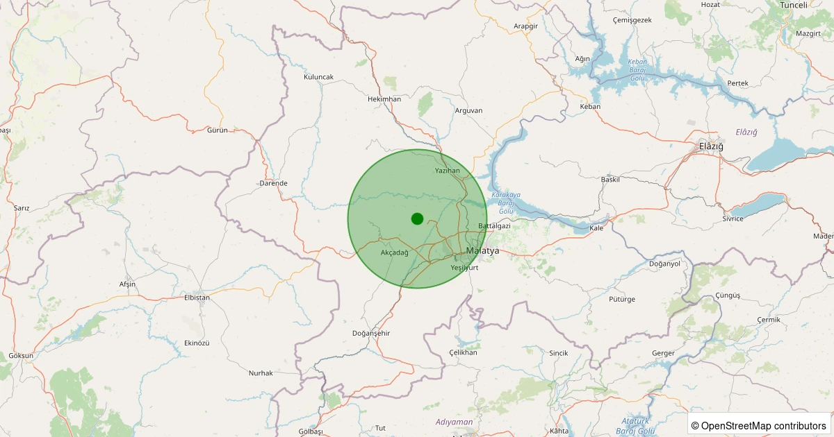 Son 7 gün içinde Akçadağ - Yukarıörükçü noktasından 100 km yarıçap içerisinde meydana gelen diğer depremler: