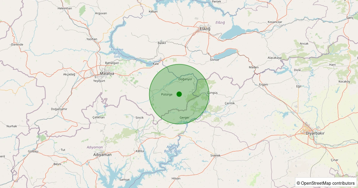 Son 7 gün içinde Pütürge - Koçköy Köyü noktasından 100 km yarıçap içerisinde meydana gelen diğer depremler: