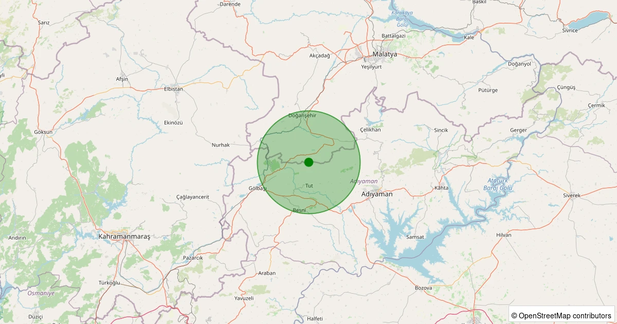 Son 7 gün içinde Doğanşehir - Hürriyet noktasından 100 km yarıçap içerisinde meydana gelen diğer depremler: