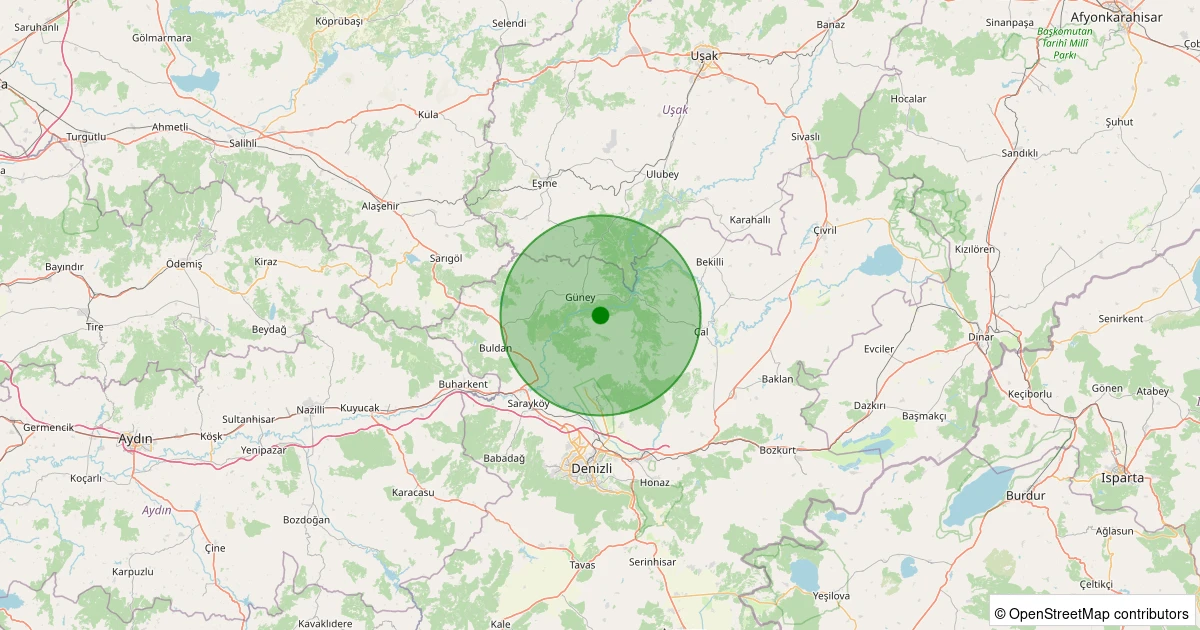 Son 7 gün içinde Güney - Doğanlı noktasından 100 km yarıçap içerisinde meydana gelen diğer depremler: