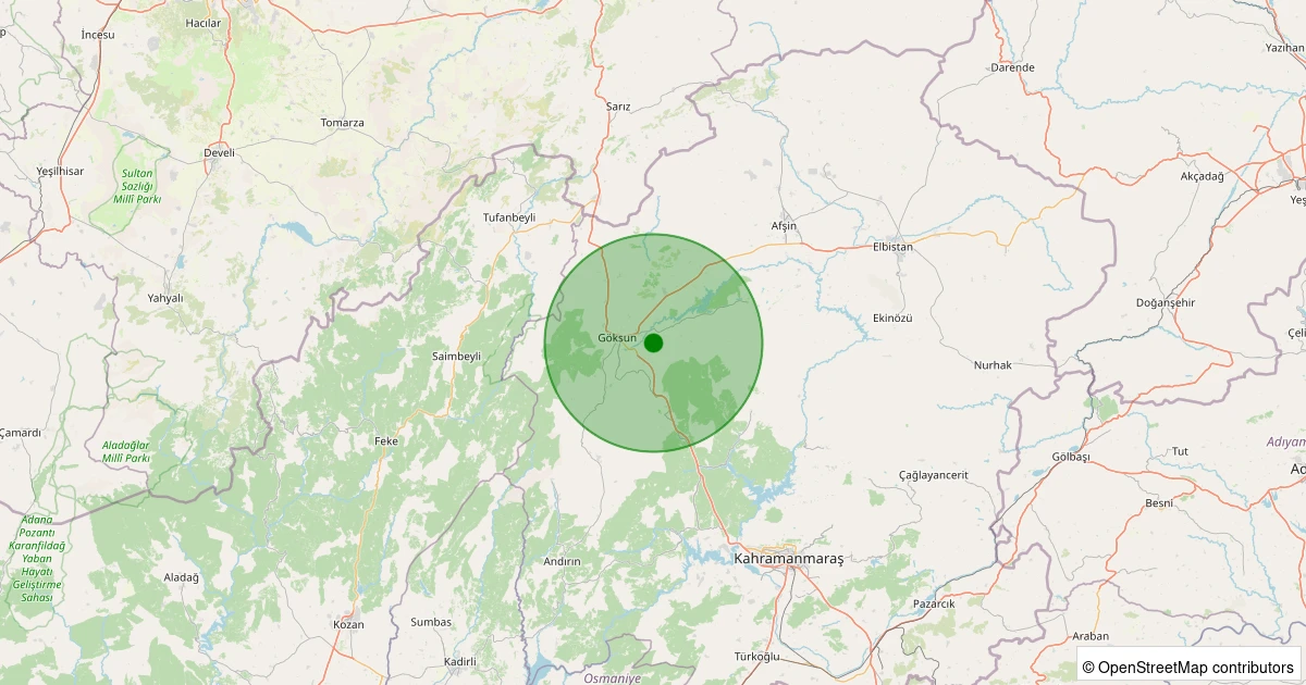 Son 7 gün içinde Göksun noktasından 100 km yarıçap içerisinde meydana gelen diğer depremler: