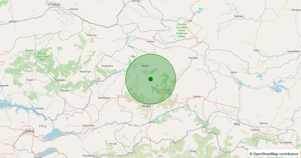 Son 7 gün içinde Adaklı - Çamlıca Köyü noktasından 100 km yarıçap içerisinde meydana gelen diğer depremler: