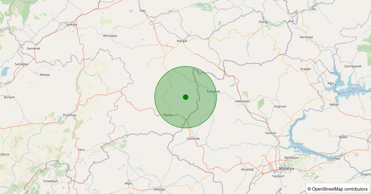 Son 7 gün içinde Gürün - Külahlı Köyü noktasından 100 km yarıçap içerisinde meydana gelen diğer depremler: