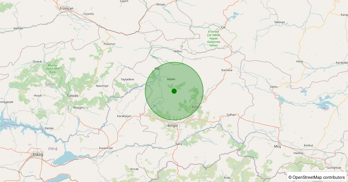 Son 7 gün içinde Adaklı - Kozlu Köyü noktasından 100 km yarıçap içerisinde meydana gelen diğer depremler: