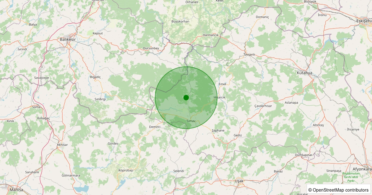 Son 7 gün içinde Simav - Karakoca Köyü noktasından 100 km yarıçap içerisinde meydana gelen diğer depremler: