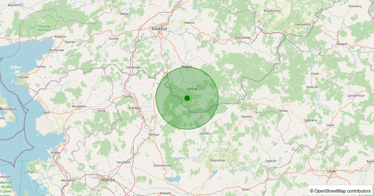 Son 7 gün içinde Sındırgı - Sinandede noktasından 100 km yarıçap içerisinde meydana gelen diğer depremler:
