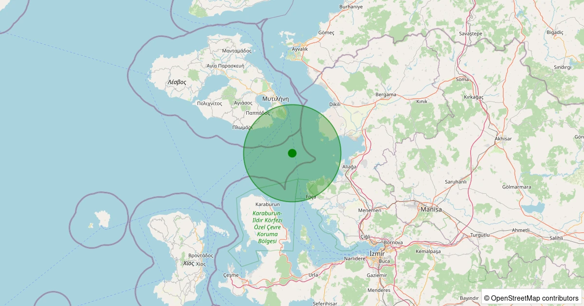 Son 7 gün içinde MIDILLI noktasından 100 km yarıçap içerisinde meydana gelen diğer depremler: