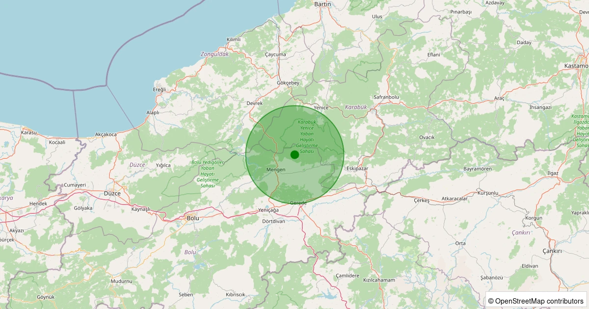 AFAD üzerinden alınan ölçümlere göre Mengen bölgesinde 15.12.2025 09:24 tarihinde gündüz saatlerinde 1.0 büyüklüğünde bir deprem meydana geldi.