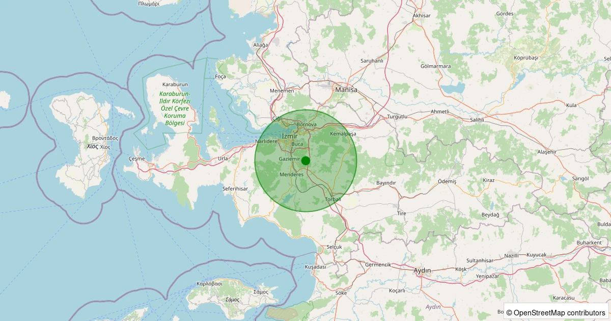 Son 7 gün içinde Buca - Kaynaklar Köyü noktasından 100 km yarıçap içerisinde meydana gelen diğer depremler: