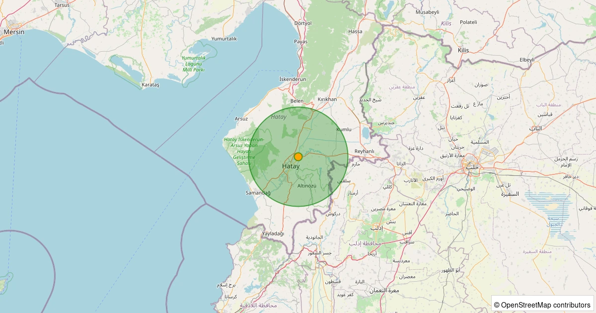 Son 7 gün içinde Antakya - Güzelburç noktasından 100 km yarıçap içerisinde meydana gelen diğer depremler: