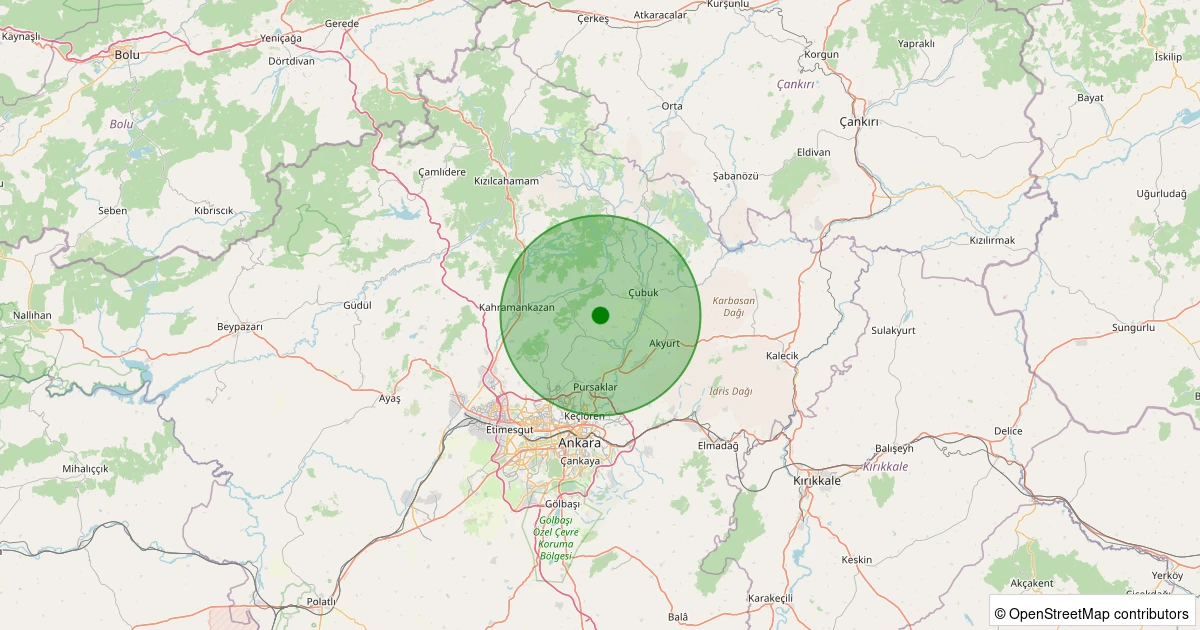 Son bir hafta içerisinde Ankara şehri Çubuk - Kutuören noktasından 100 km yarıçap içerisinde toplamda 52 deprem kaydedilmiştir. Bu depremlerden en büyüğü 2.5 büyüklüğünde ve en sığ odaklısı 5.00 kilometre derinlikte gerçekleşmiştir.