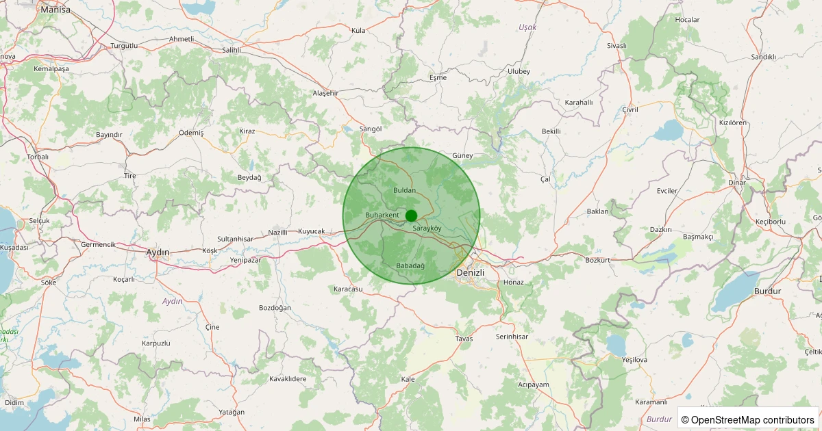 Son 7 gün içinde Sarayköy - Karataş Köyü noktasından 100 km yarıçap içerisinde meydana gelen diğer depremler: