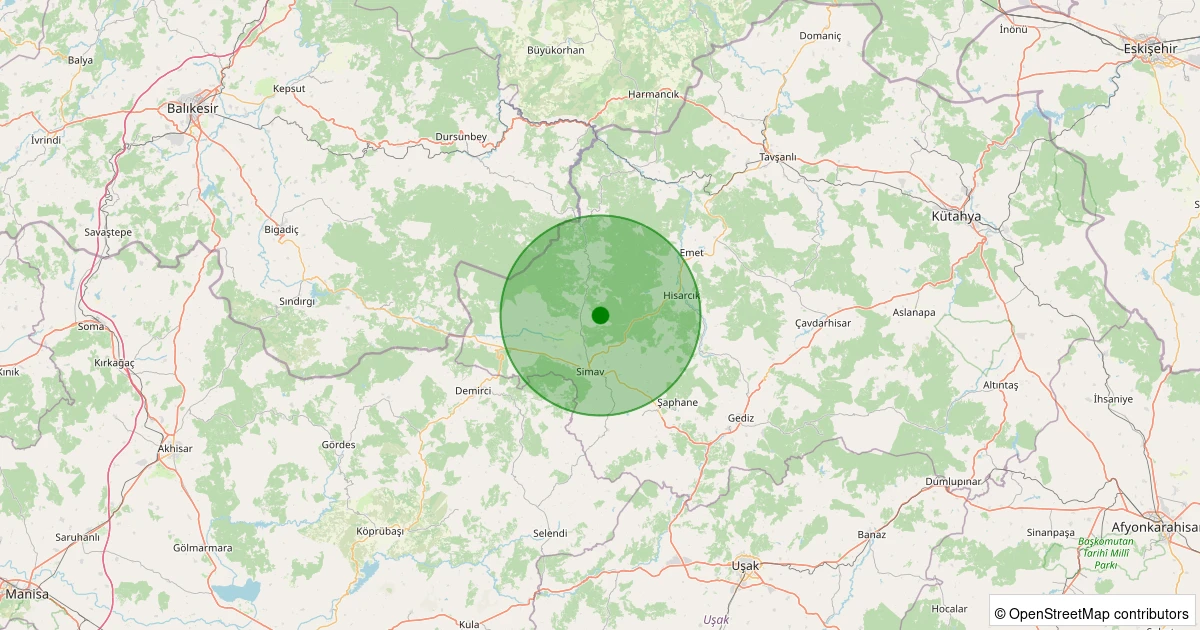 Son 7 gün içinde Simav - Yemişli Köyü noktasından 100 km yarıçap içerisinde meydana gelen diğer depremler: