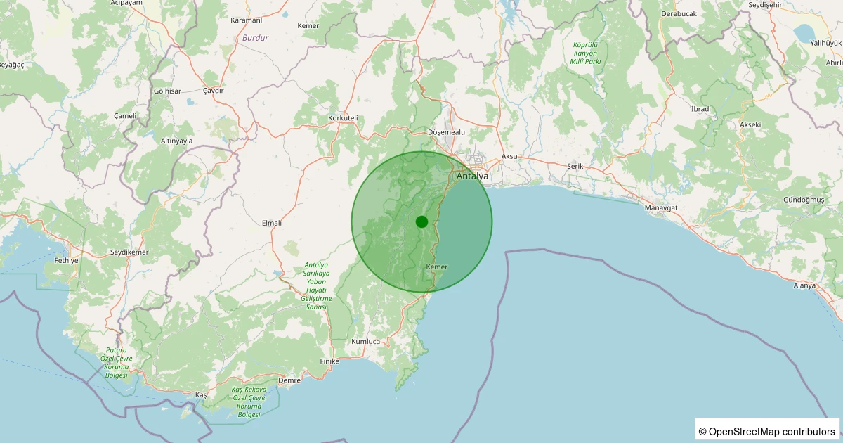 Son bir hafta içerisinde Antalya şehri Kemer - Beldibi noktasından 100 km yarıçap içerisinde toplamda 19 deprem kaydedilmiştir. Bu depremlerden en büyüğü 2.9 büyüklüğünde ve en sığ odaklısı 5.00 kilometre derinlikte gerçekleşmiştir.