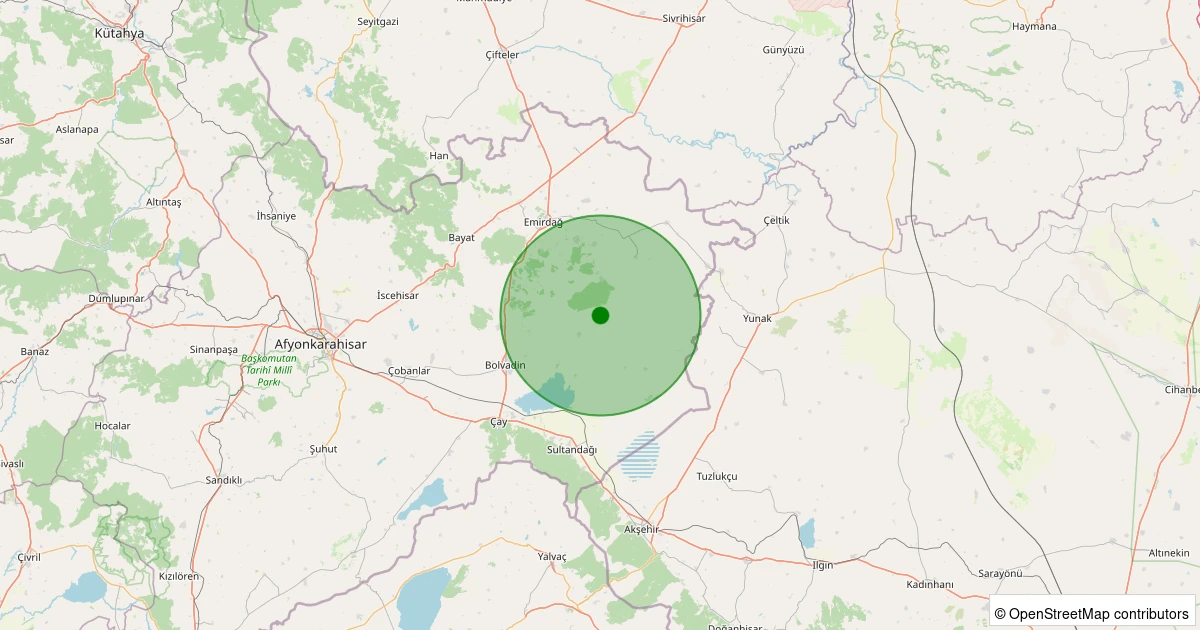 Son bir hafta içerisinde Afyonkarahisar şehri Bolvadin - Büyükkarabağ/Hacıbekir Köyü noktasından 100 km yarıçap içerisinde toplamda 17 deprem kaydedilmiştir. Bu depremlerden en büyüğü 1.7 büyüklüğünde ve en sığ odaklısı 6.00 kilometre derinlikte gerçekleşmiştir.